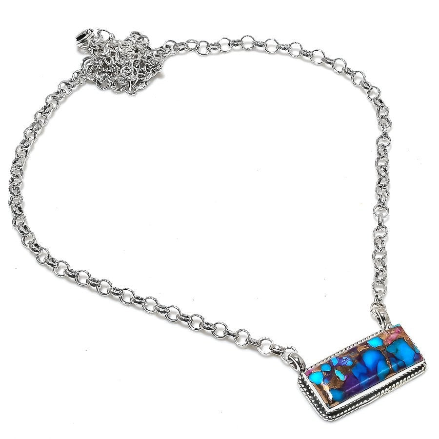 Kingman Pink Spiny Turquoise Stone Sterling Silver Mother Chain Necklace US 11