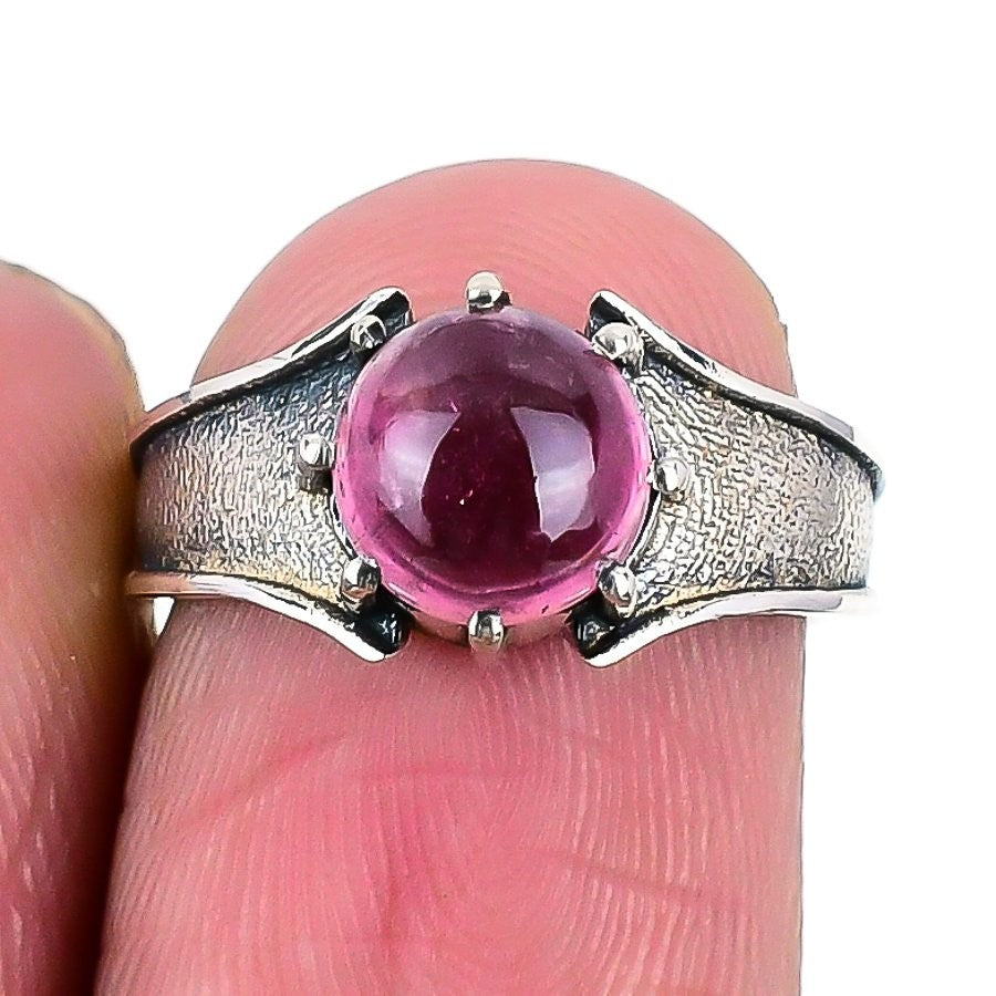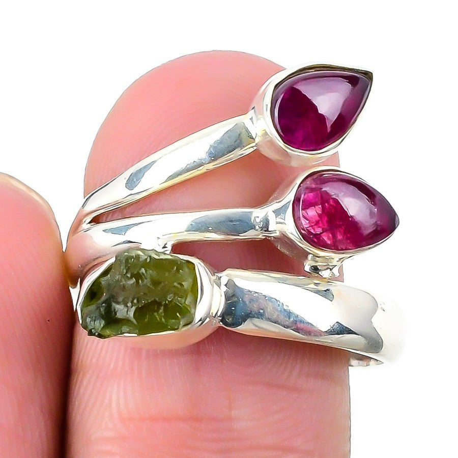 Natural Pink Tourmaline 925 Silver Ethnic Cluster Sister New Ring Jewelry Size 6