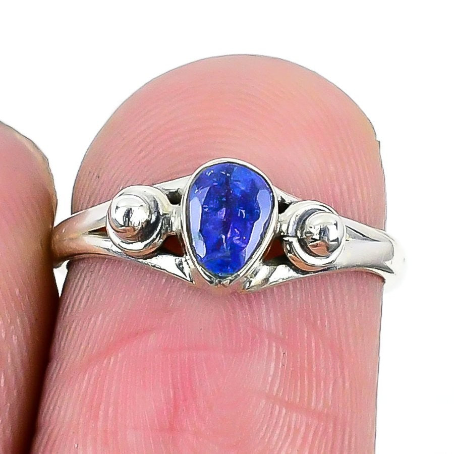 Natural Lapis Lazuli Daughter Cluster Art Deco Ring Jewelry Size 5.5 925 Silver
