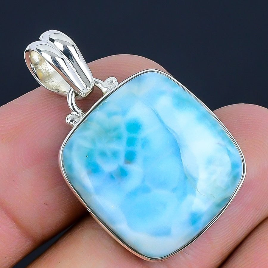 Natural Larimar 925 Silver Birthday Engagement Throat Chakra New Pendant Jewelry