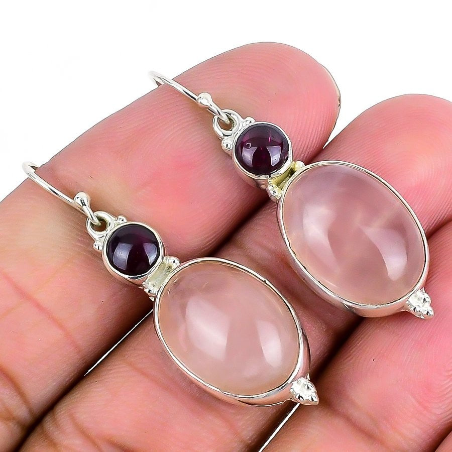 Natural Rose Quartz 925 Sterling Silver Dangle Best Friend Gift Earrings Jewelry