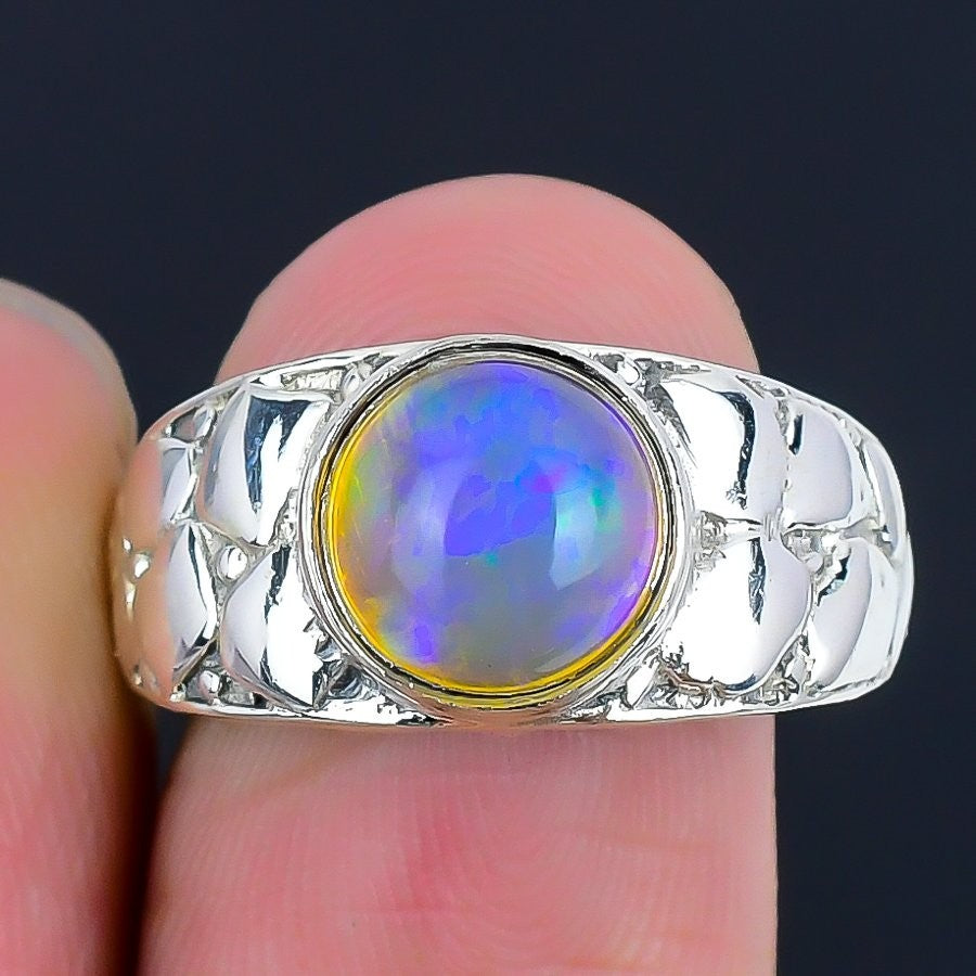 Natural Ethiopian Opal Statement Mother Bezel Wedding Ring 925Ā SolidĀ Silver US 7