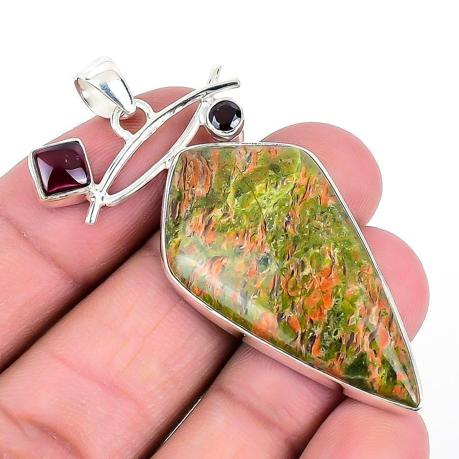 Heart Chakra Natural Unakite 925Ā SolidĀ Silver Anniversary Bezel Sister Pendant