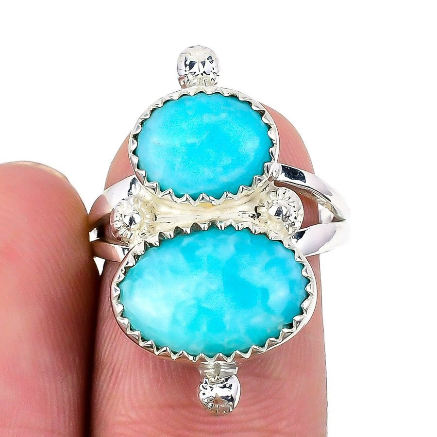 Republic Larimar Stone 925 Sterling Silver Statement Ethnic Ring Jewelry US 7