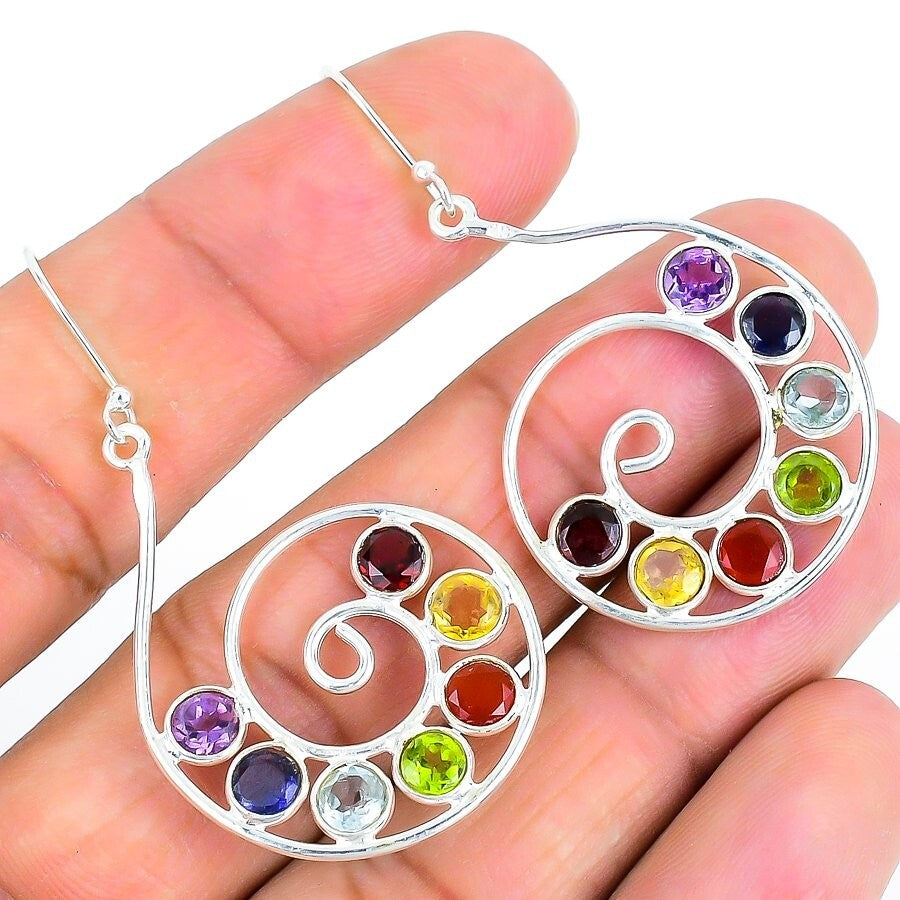 Seven Chakra Gemstone New Sister Drop Hook Womens day Earrings 925Ā SolidĀ Silver