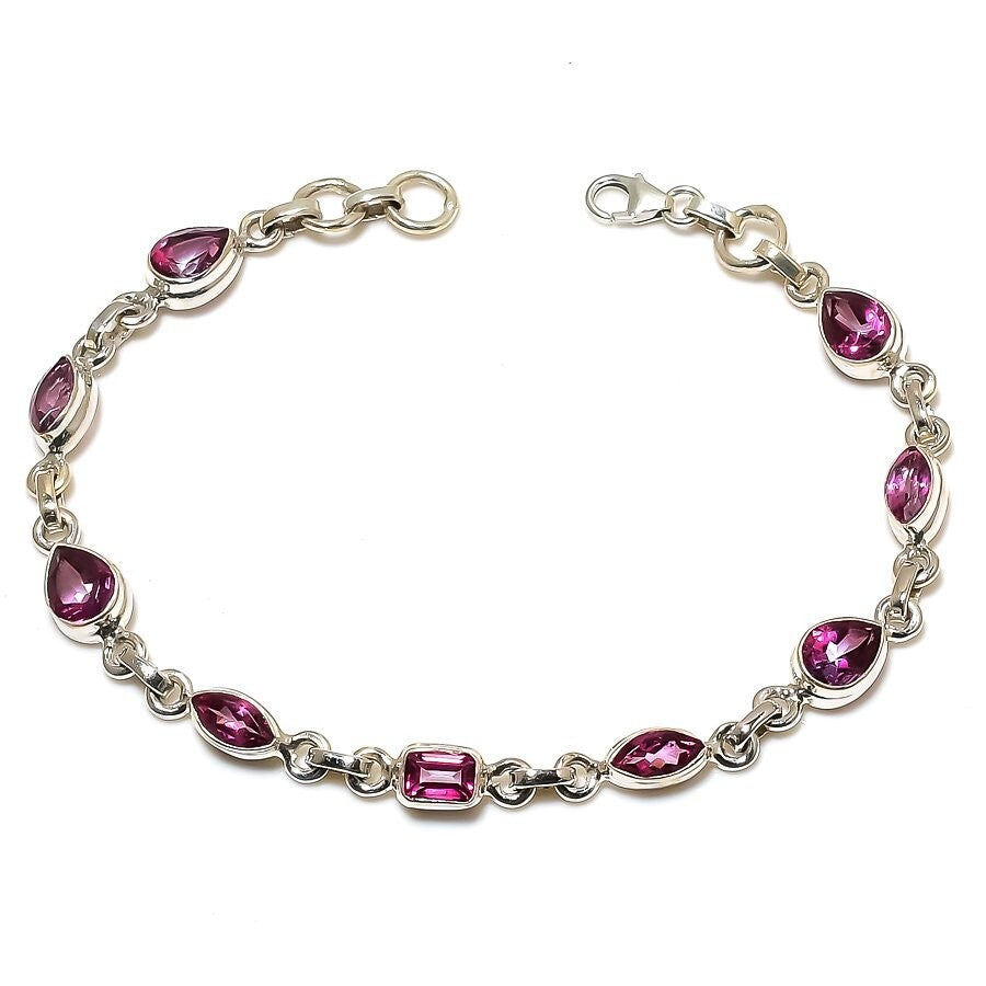 Pink Topaz Gemstone Sterling Silver Wife Elegant Unique Chain Bracelet Jewelry