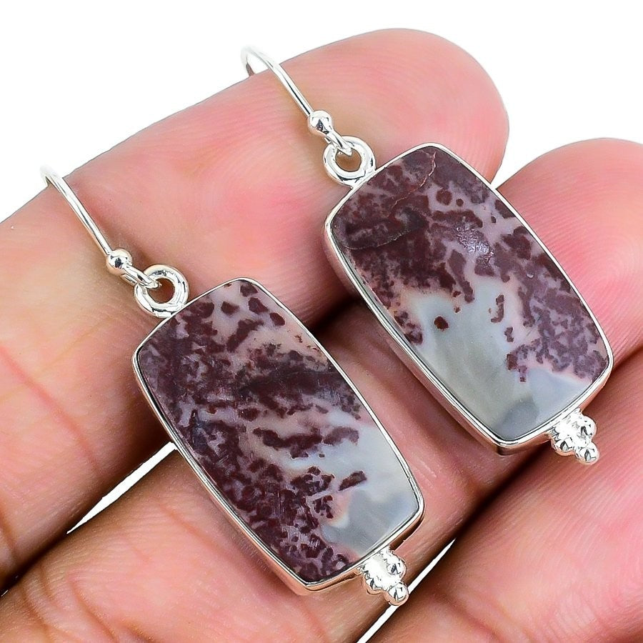 Natural Coffeebean Jasper Solid Sterling Silver Drop Art Deco Earrings Jewelry
