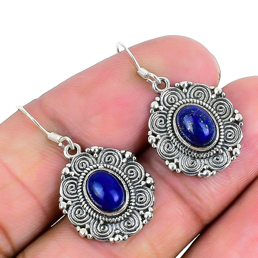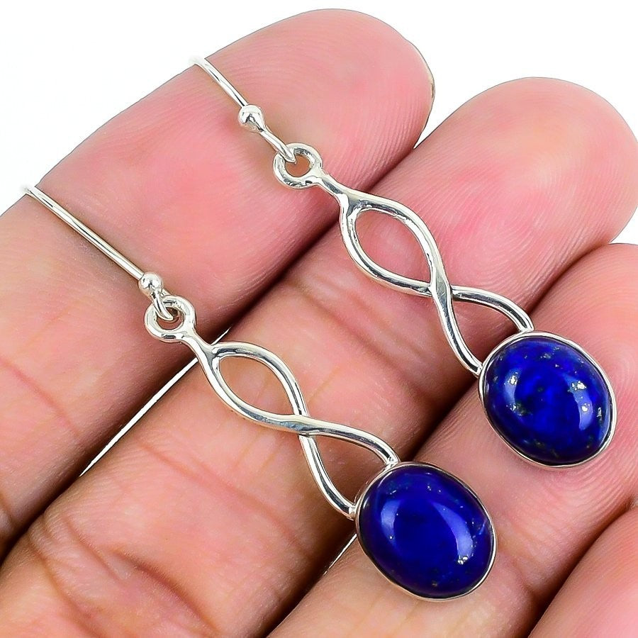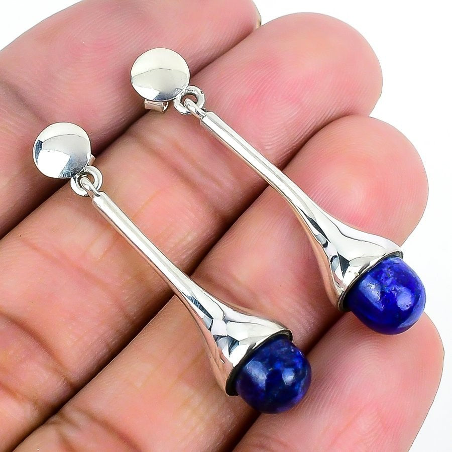 Lapis Lazuli Stone 925 Silver Bezel Drop Throat Chakra Mother Earrings Jewelry