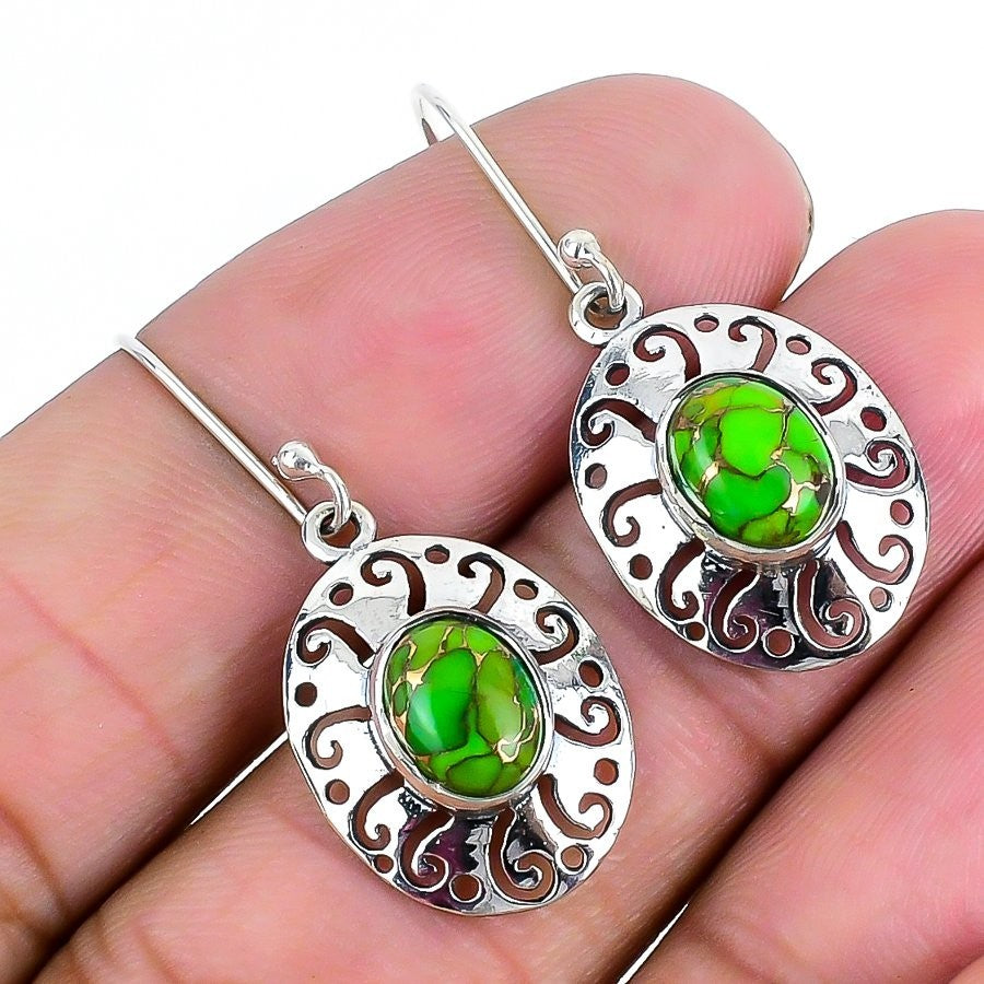 Copper Green Turquoise Stone 925Ā SolidĀ Silver Handcrafted Drop Mother Earrings