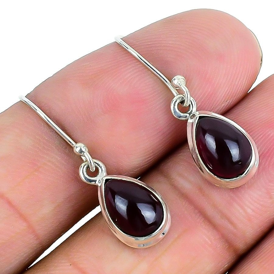Natural Garnet Solid Sterling Silver Wife Bezel Hook Drop Boho Earrings Jewelry