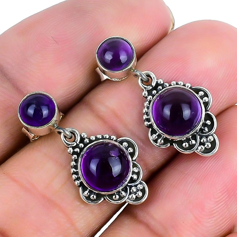 Sage Amethyst Stone 925 Silver Hook Dangle Drop Crown Chakra Earrings Jewelry