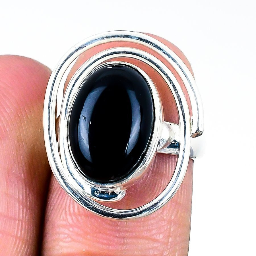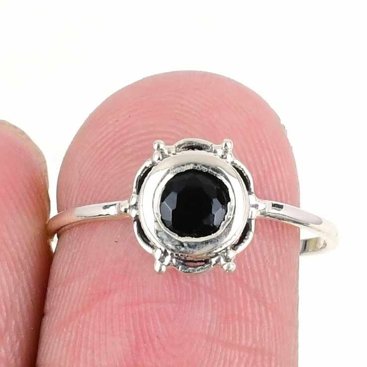 Black Onyx Gemstone Solid Silver Band Root Chakra Boho Friend Gift Ring US 5.5