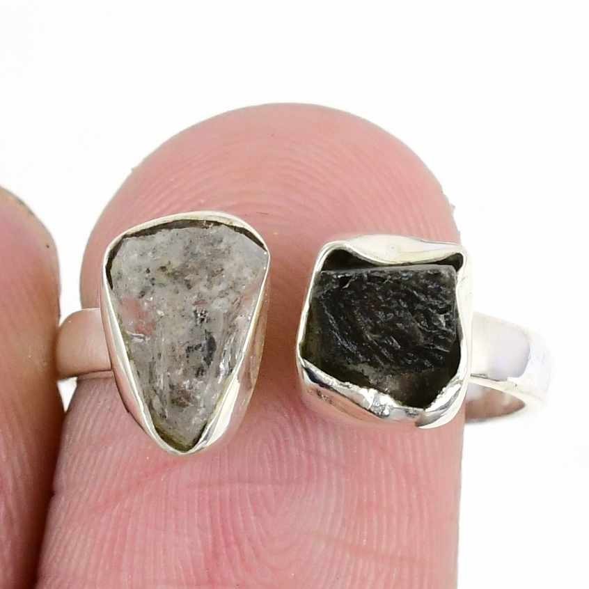 Moldavite & herkimer Daimond Gemstone Solid Sterling Silver Artisan Cluster Ring