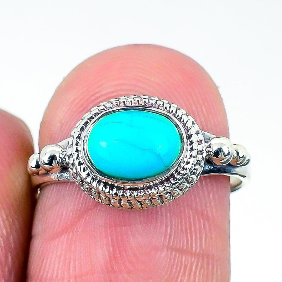 Arizona Turquoise Stone Band Friend Gift Ring Jewelry 925 Sterling Silver US 7