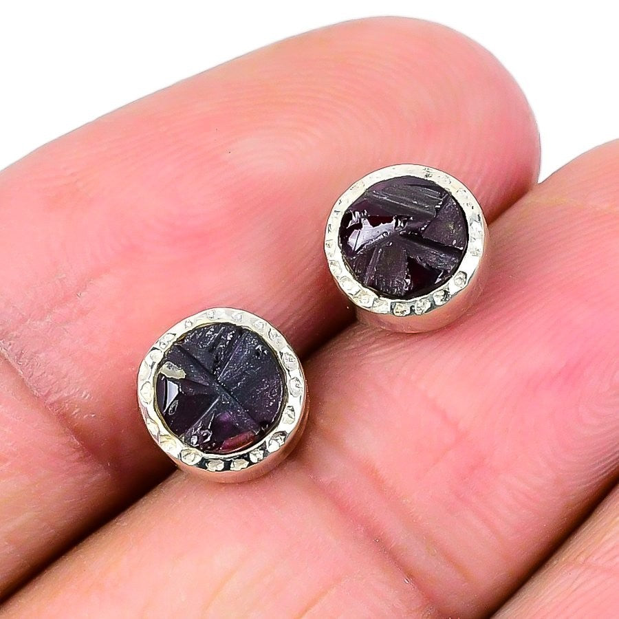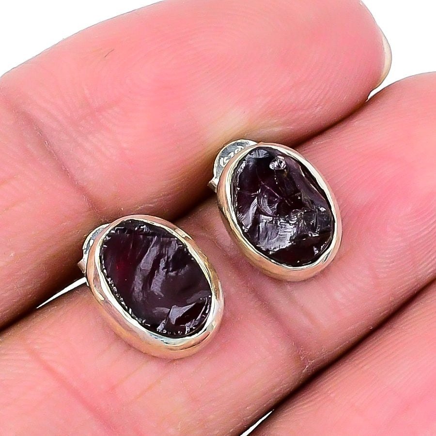 Natural Garnet Rough 925 Sterling Silver Stud Post Sisters Gift Earrings Jewelry