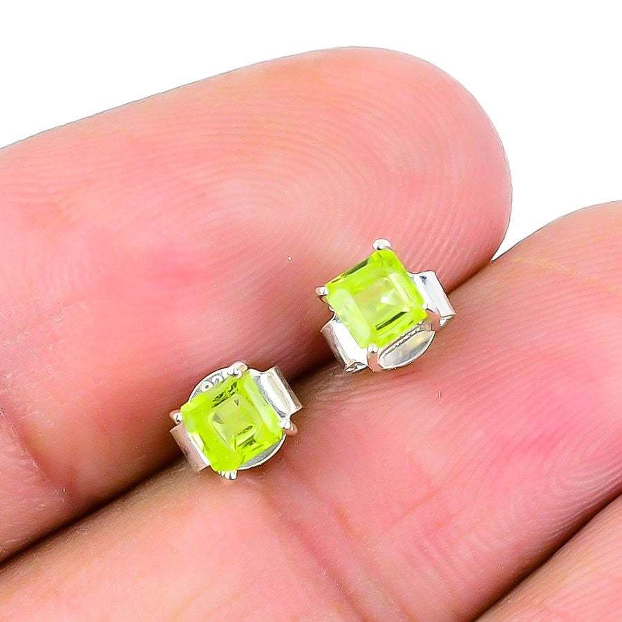 Natural Peridot 925 Solid Silver Stud Post Best Friend Gift New Earrings Jewelry