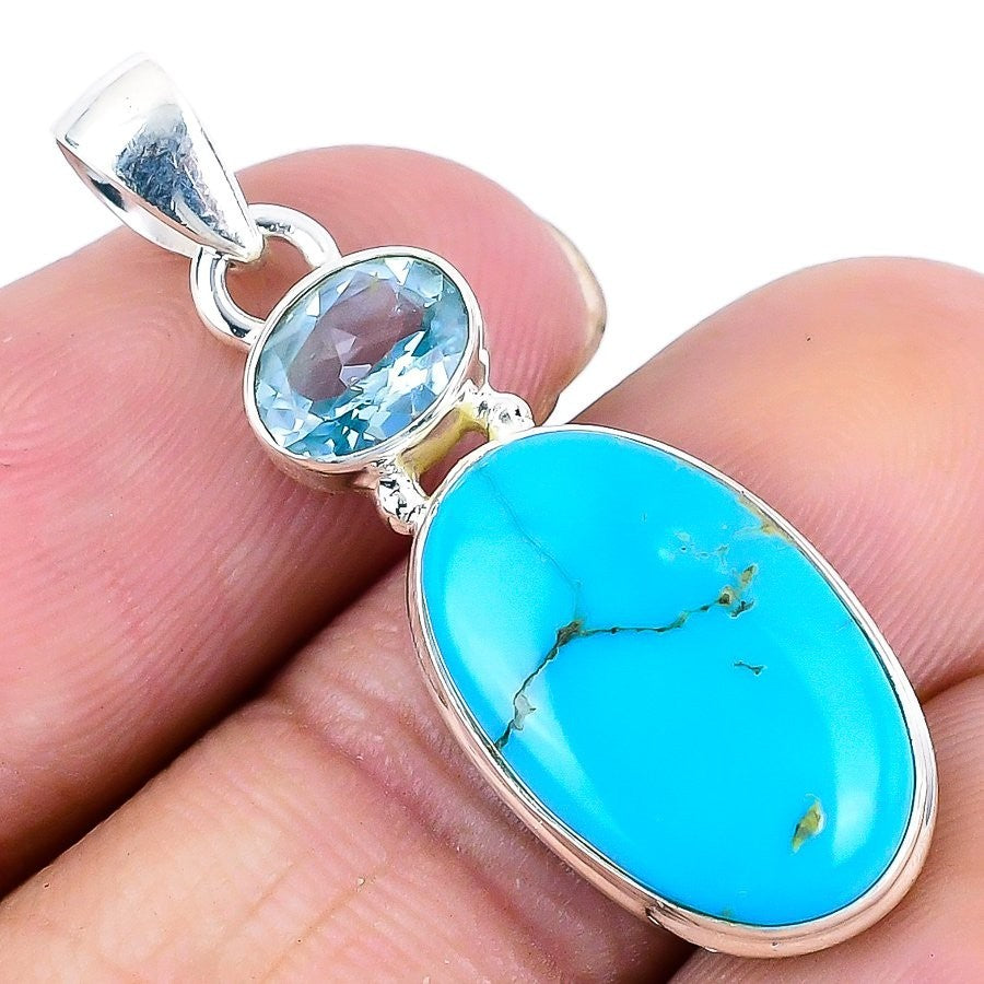 Natural Arizona Turquoise Sterling Silver Wife Wedding Engagement Boho Pendant