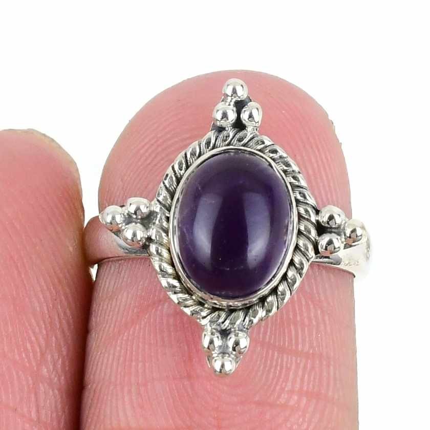 February Amethyst Stone Solid Silver Engagement Cluster Handcrafted Ring Size 6