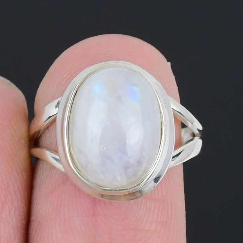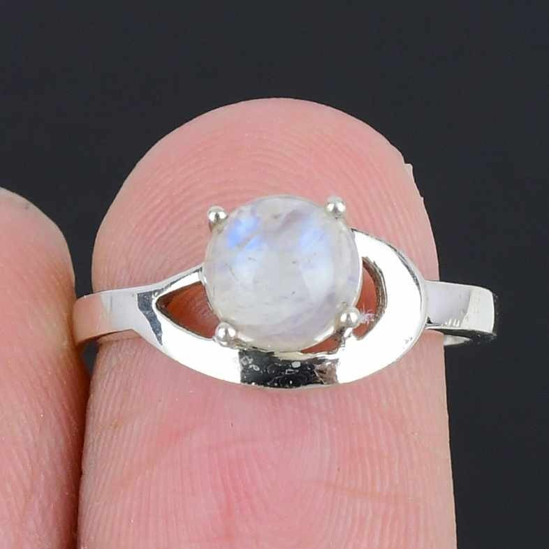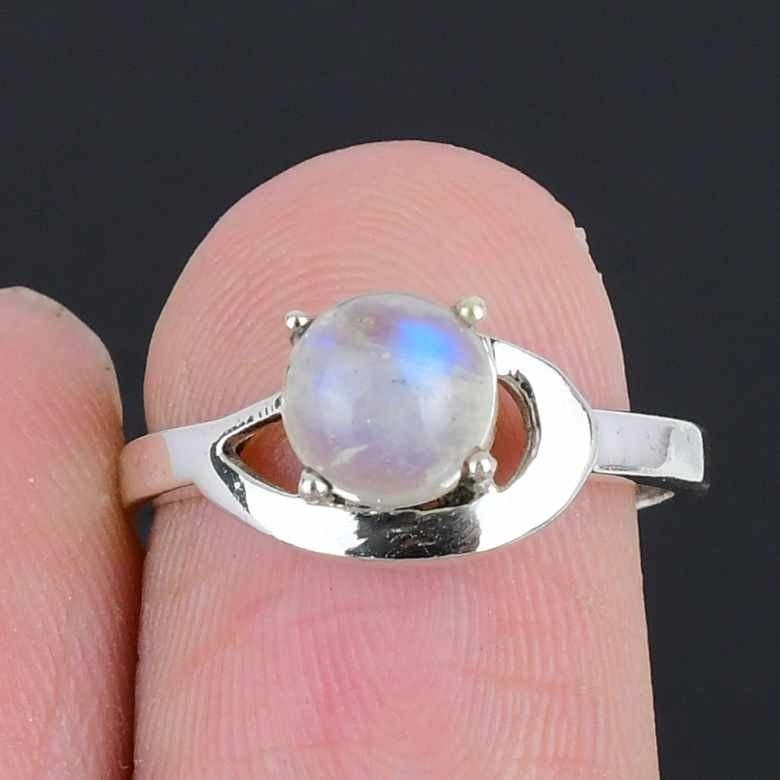 Natural Rainbow Moonstone 925 Silver Cluster Friend Gift Ring Jewelry Size 6.5