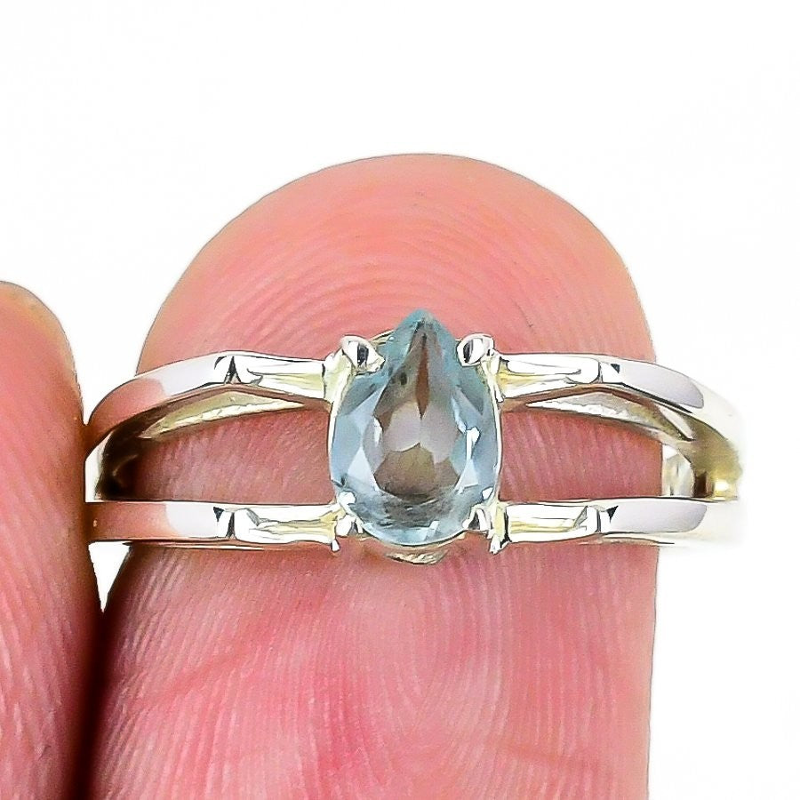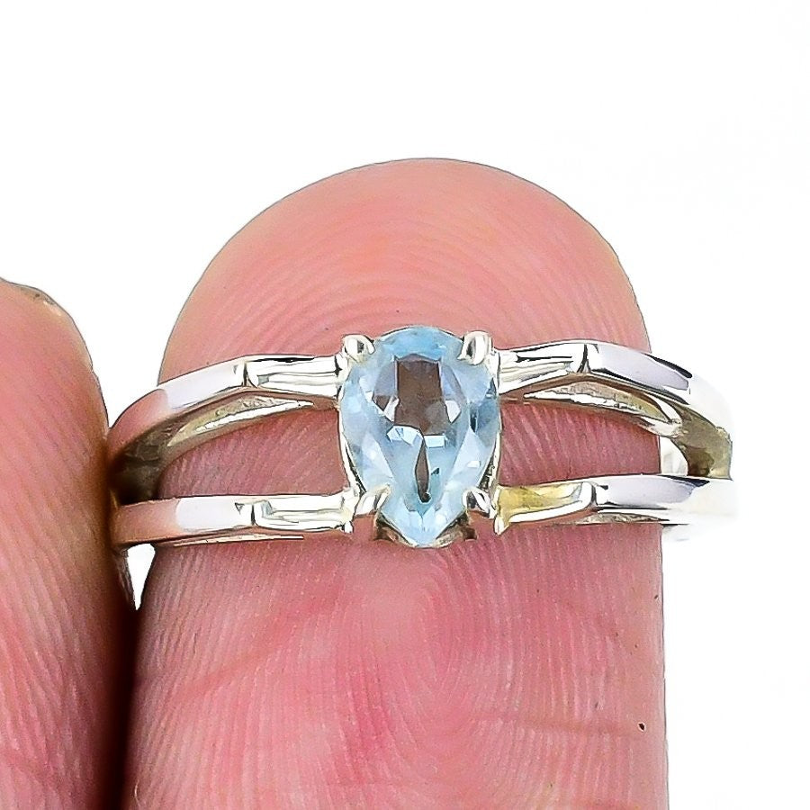 Swiss Blue Topaz Gemstone Sterling Silver Statement Elegant Sister New Ring US 7