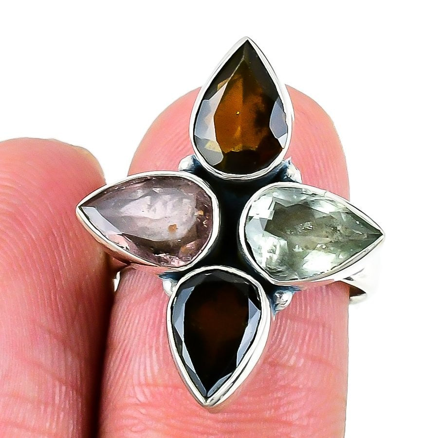 Multi Tourmaline Stone Statement Friend Gift Ring Jewelry Sterling Silver US 7