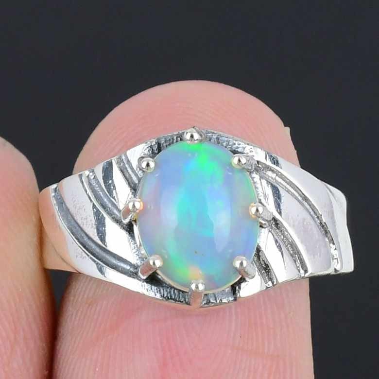 Ethiopian Opal Gemstone 925 Silver Elegant Trendy Cluster Mother Ring Jewelry