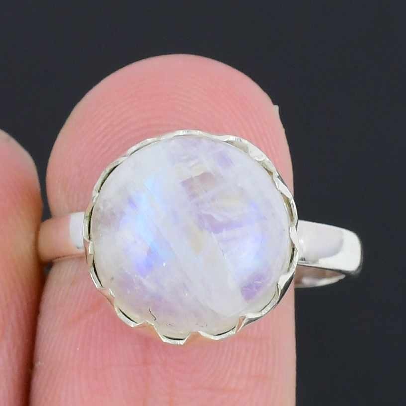 Crown Chakra Natural Rainbow Moonstone Sterling Silver Cluster New Ring Size 9.5