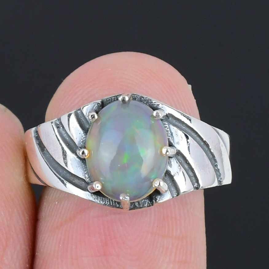 Natural Ethiopian Opal 925 Silver Anniversary Boho Cluster Daughter Ring Size 6
