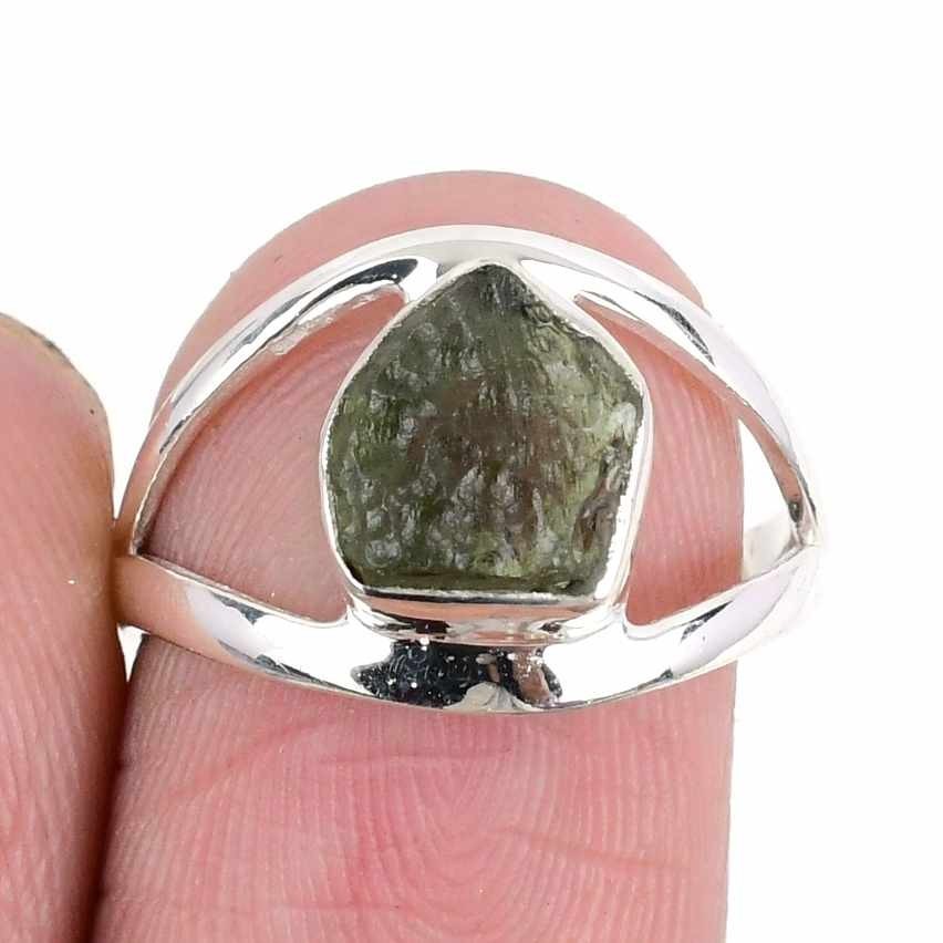 Moldavite Gemstone Unique Cluster Sisters Gift Ring Size 7.5 925Ā SolidĀ Silver