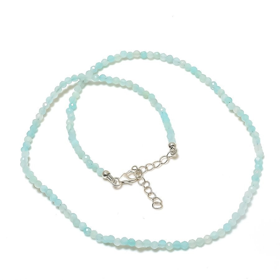 Aquamarine Faceted Gemstone Sterling Silver Ethnic Chain Throat Chakra Necklace