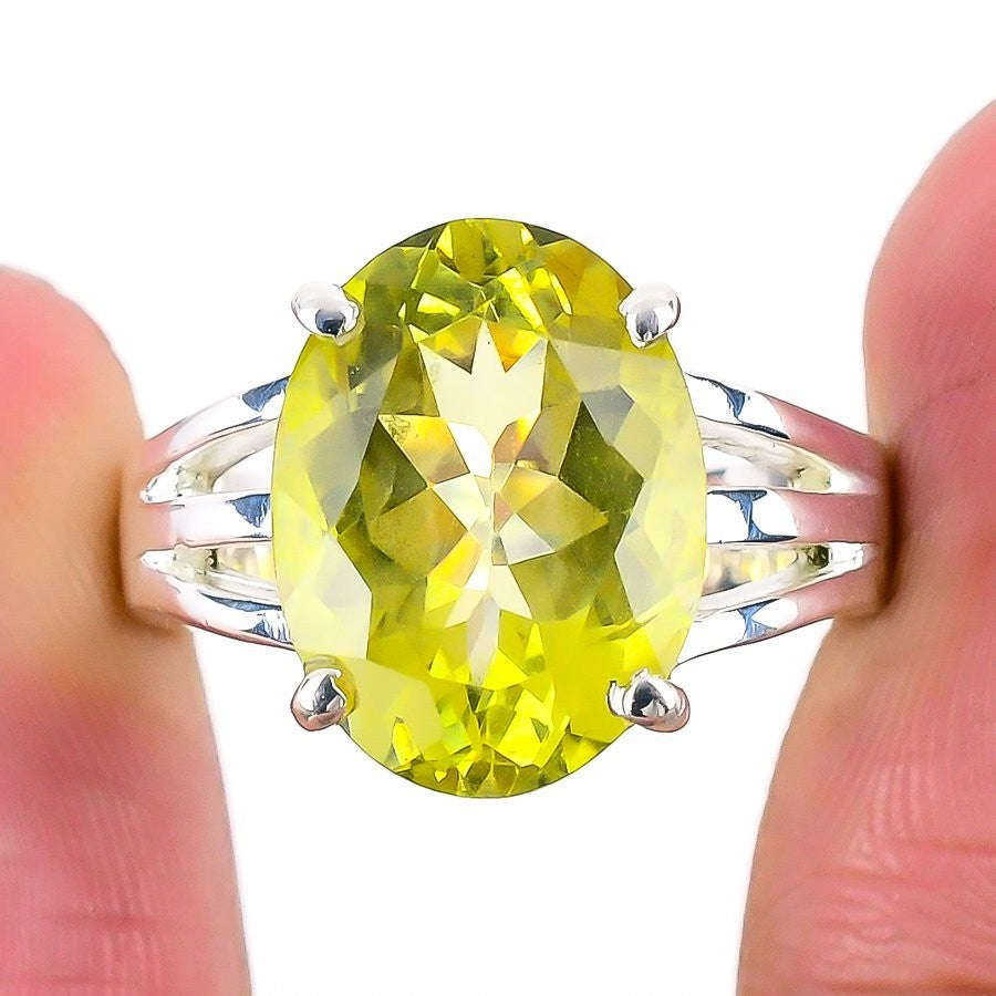 Natural Citrine Solid Silver November Birth Trendy Statement Ring Jewelry Size 8