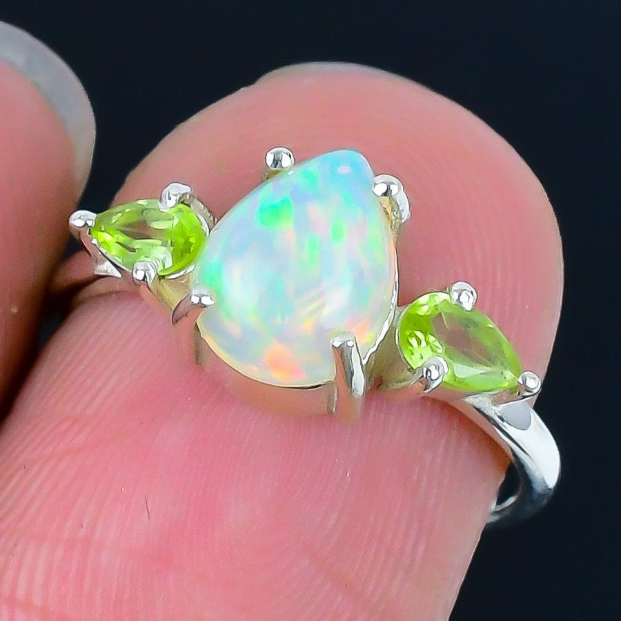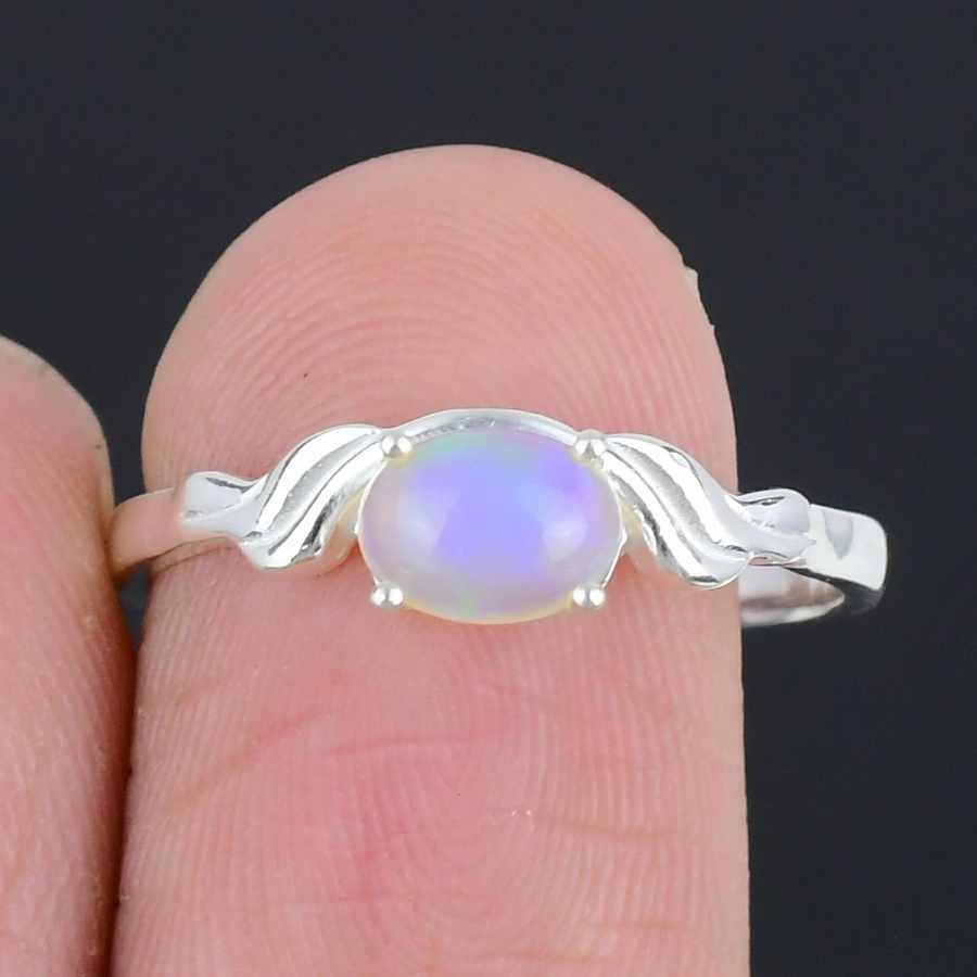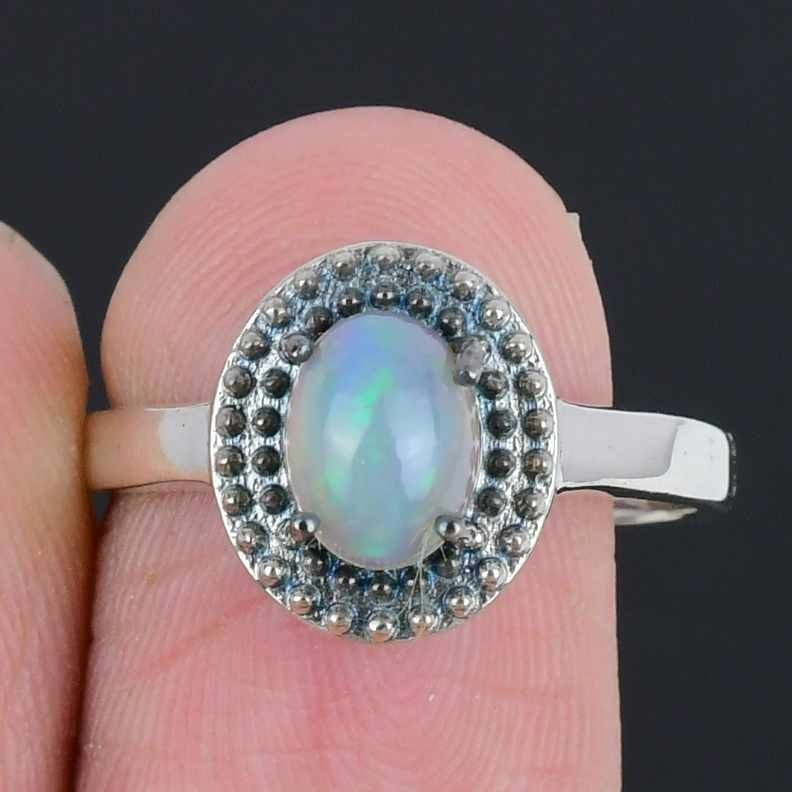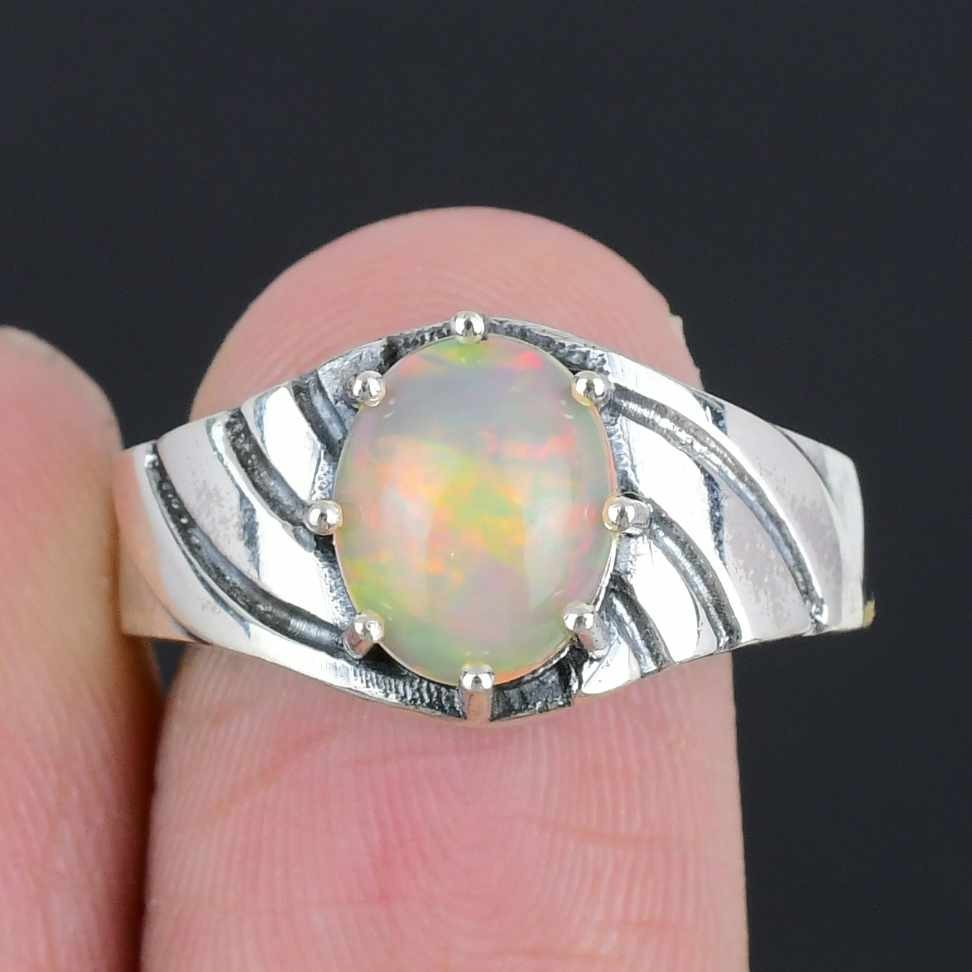 Natural Ethiopian Opal Solid Sterling Silver Statement Wife Ring Jewelry Size 7