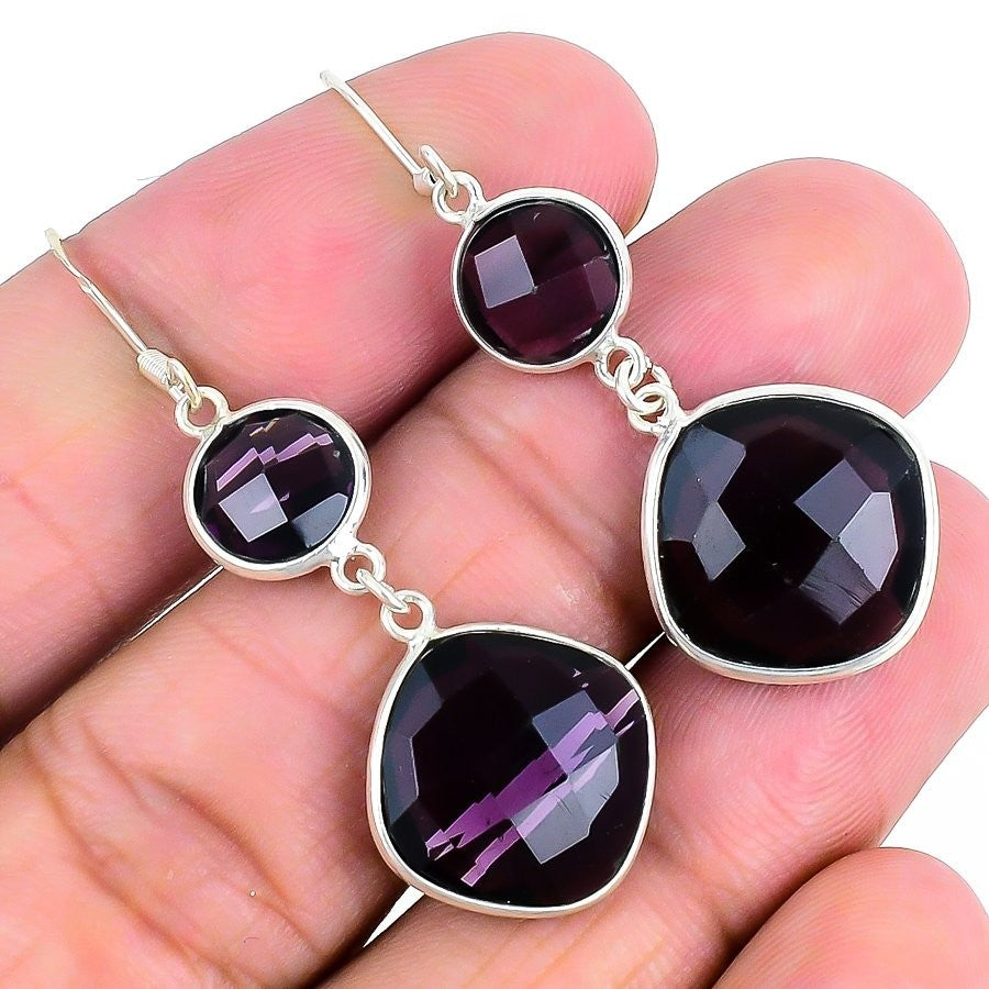 Natural Amethyst Treated Solid Silver Hook Dangle Sisters Day Wedding Earrings