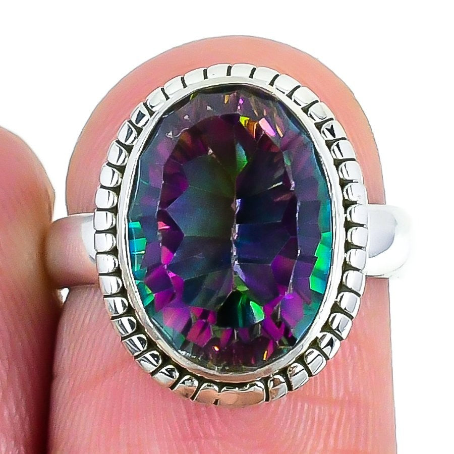 Mystic Topaz Gemstone Solid Silver Statement Sister Stackable Promise Ring US 6