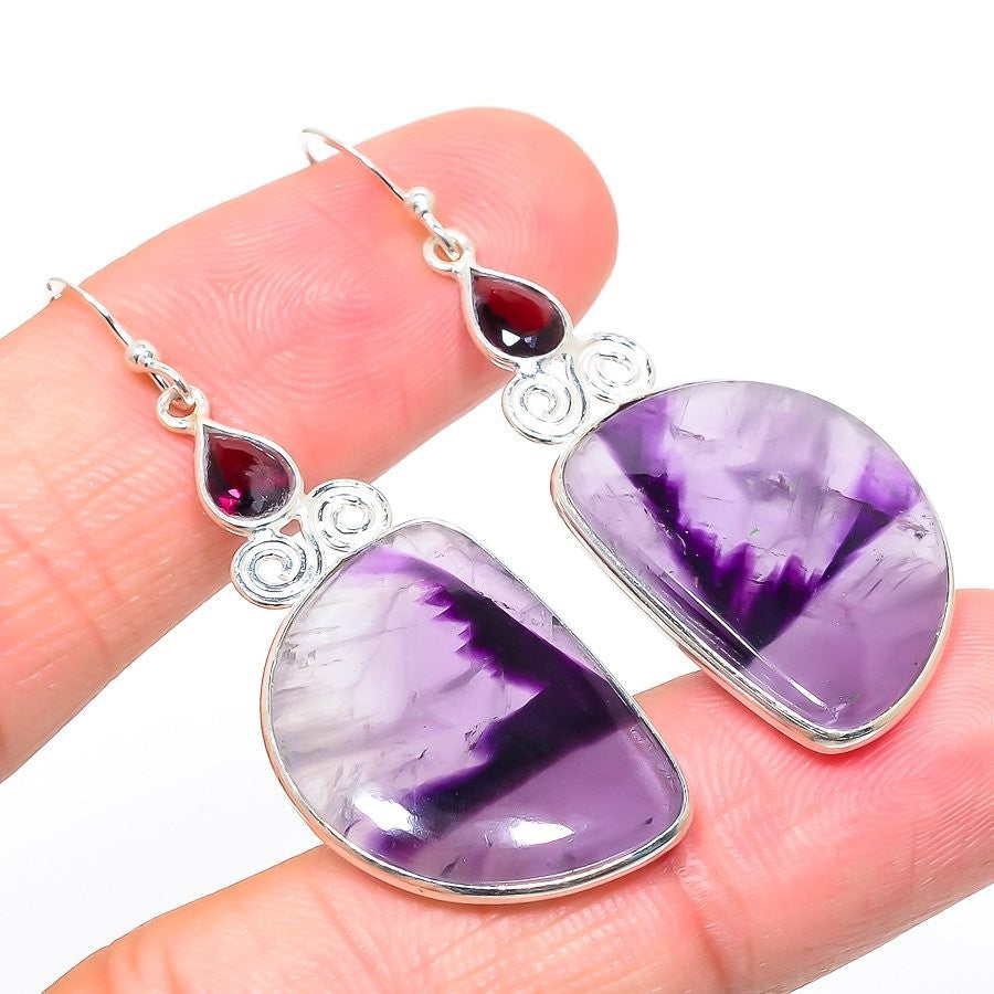 Sage Amethyst Stone 925 Sterling Silver Hook Dangle Friend Gift Earrings Jewelry