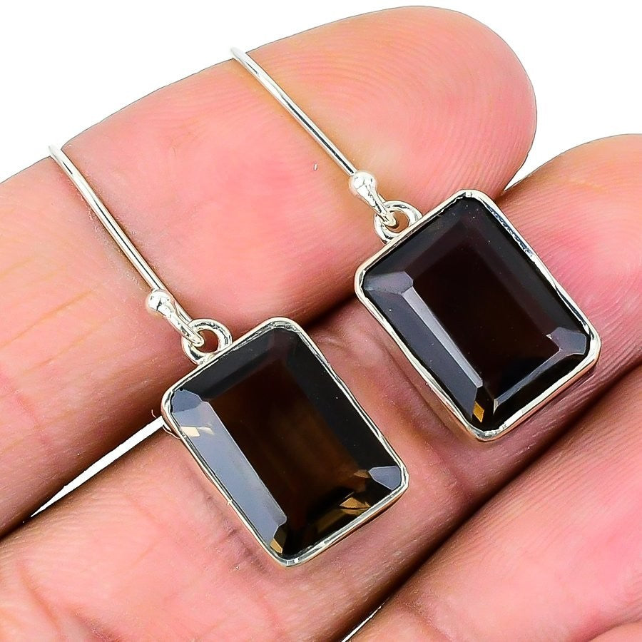 Friendship Day Deal Smoky Topaz Stone Solid Silver Drop Unique Mother Earrings
