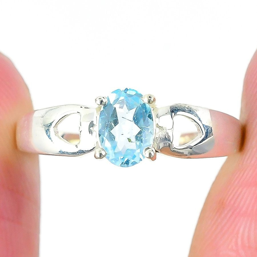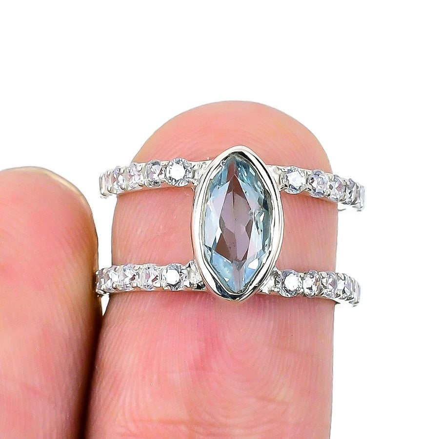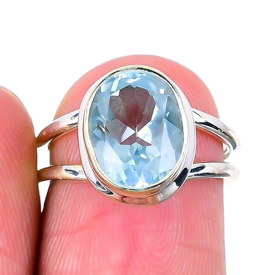 Swiss Blue Topaz Gemstone 925 Silver Handcrafted Statement Daughter Ring US 6
