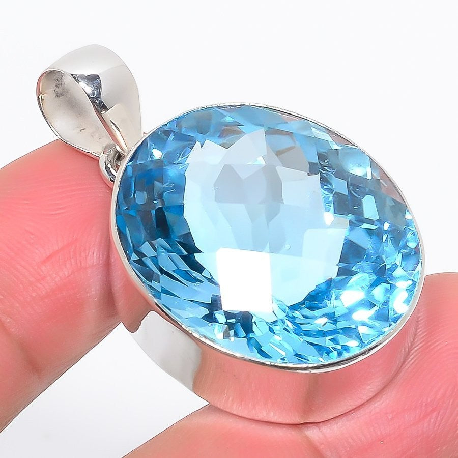 Swiss Blue Topaz Gemstone 925 Silver Daughter Elegant Engagement Pendant Jewelry