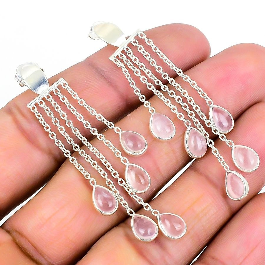 Friendship Day Sale Natural Rose Quartz 925 Silver Dangle Drop Earrings Jewelry