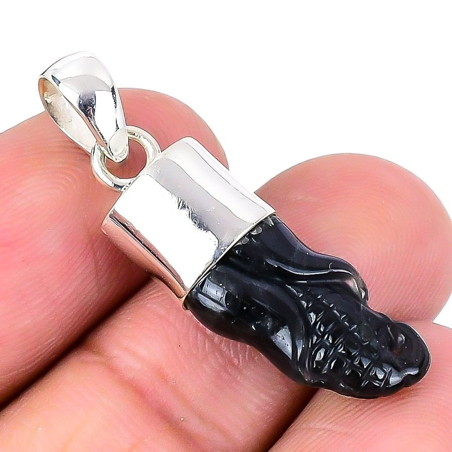 Sisters Day Sale Snoflake Obsidian Stone New Engagement Pendant 925Ā SolidĀ Silver