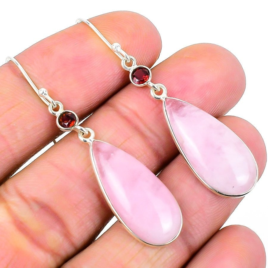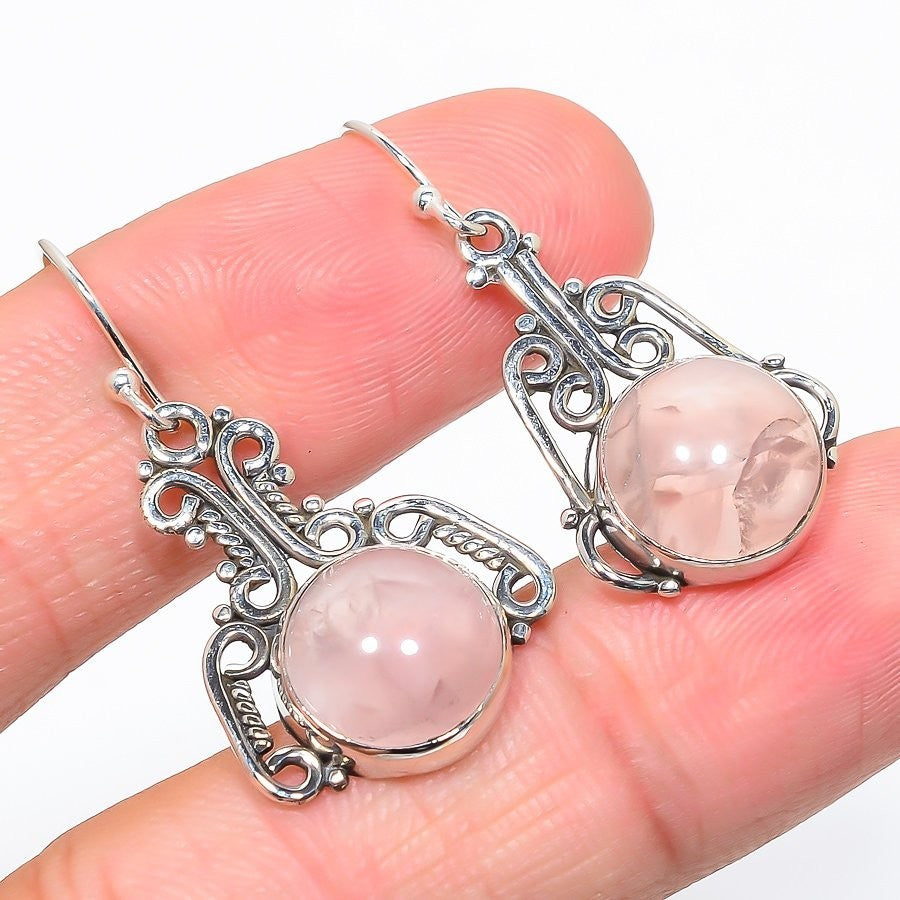 Natural Rose Quartz Drop Best Friend Gift Wife Earrings Jewelry Sterling Silver