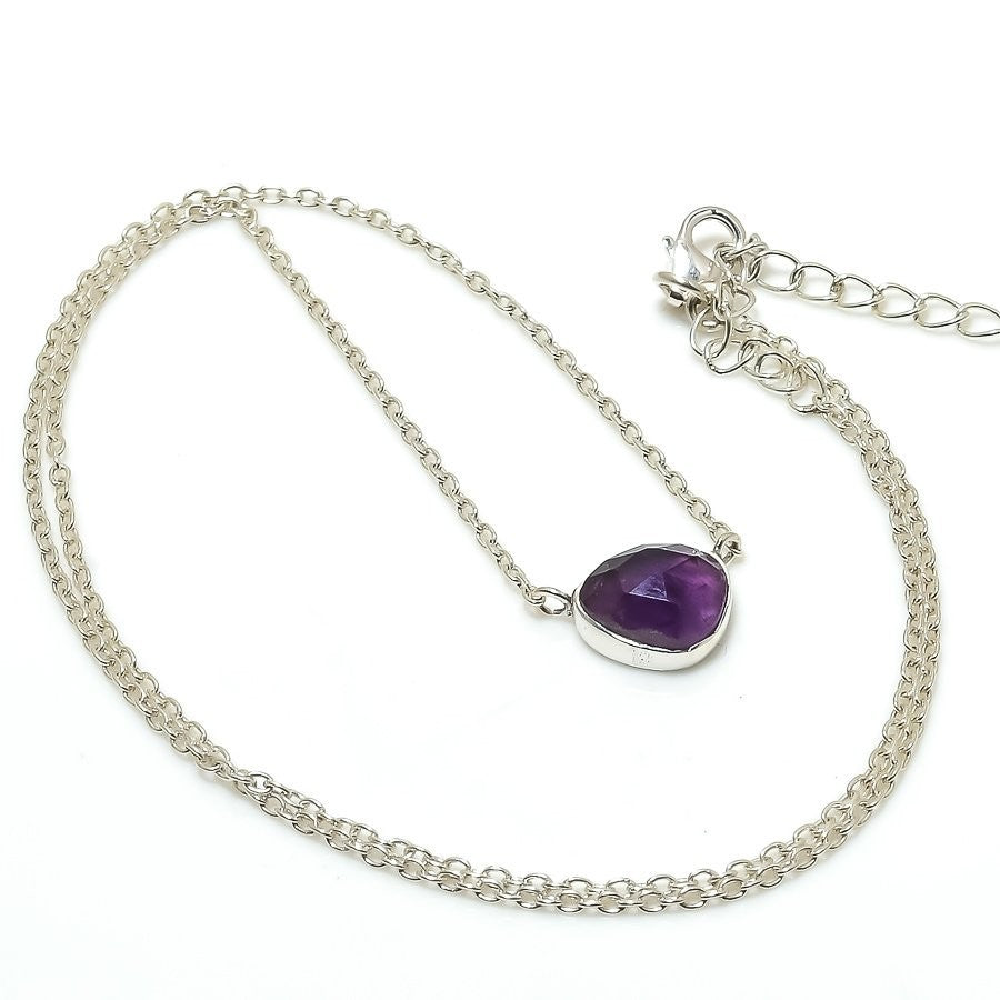 Sage Amethyst Stone 925 Silver Chain Engagement Art Deco Trendy Necklace Jewelry