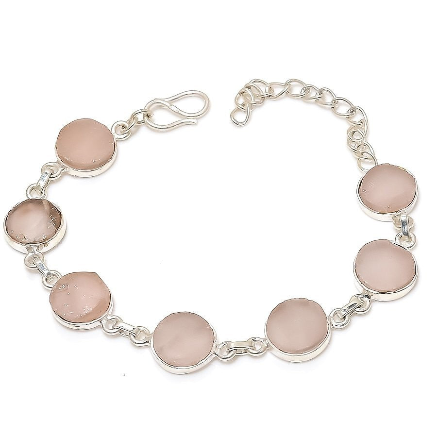 Rose Quartz Gemstone Sterling Silver Mother Boho Chain Wedding Bracelet Jewelry