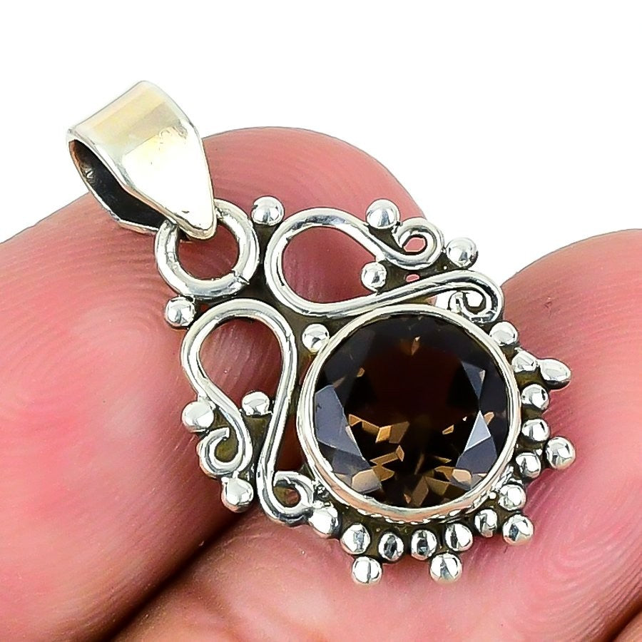 Smoky Topaz Gemstone Elegant Engagement Art Deco New Pendant 925 Sterling Silver