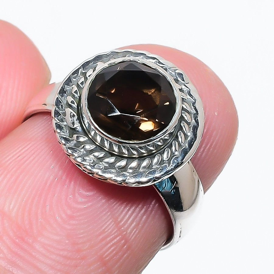 Smoky Topaz Gemstone 925Ā SolidĀ Silver Anniversary Statement Ring Jewelry US 7