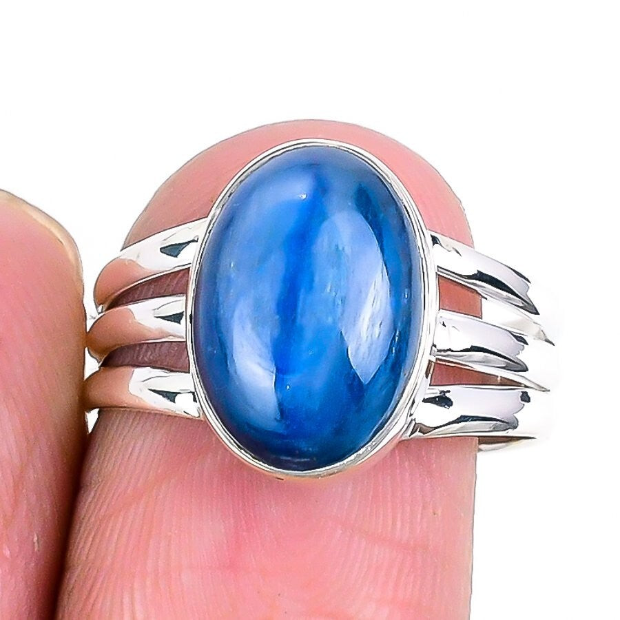 Natural Blue Kyanite 925 Solid Silver Daughter New Cluster Ring Jewelry Size 8.5