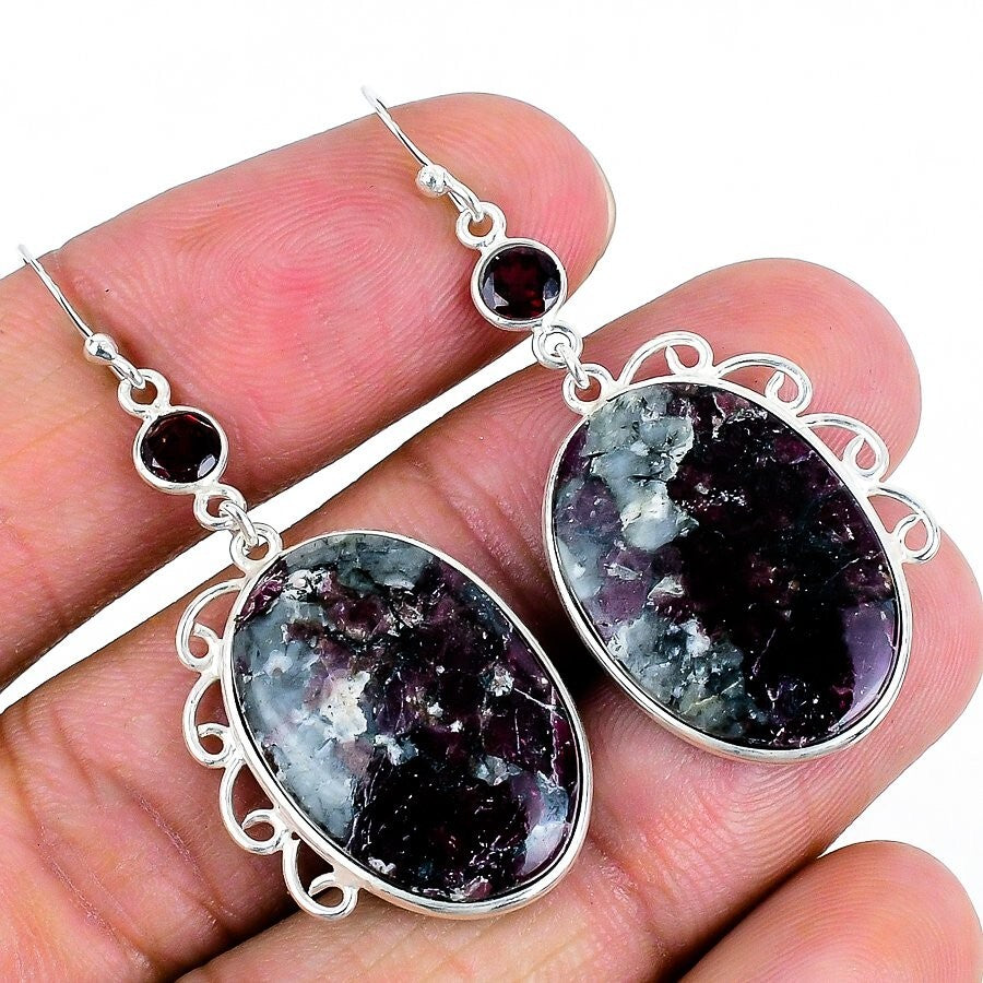 Eudialyte Stone Solid Sterling Silver Dangle Drop Sister Wedding Hook Earrings
