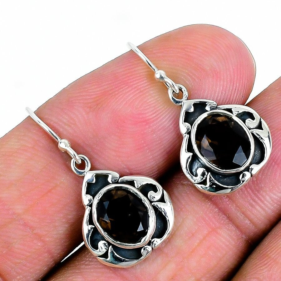 Smoky Topaz Stone Solid Silver Drop Dangle Handcrafted Mother Earrings Jewelry