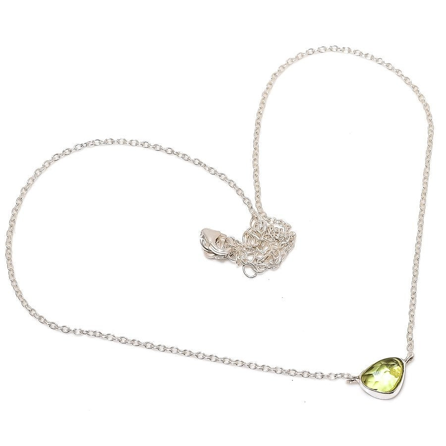 Heart Chakra Peridot Stone Solid Silver Sister Chain Elegant Necklace Jewelry
