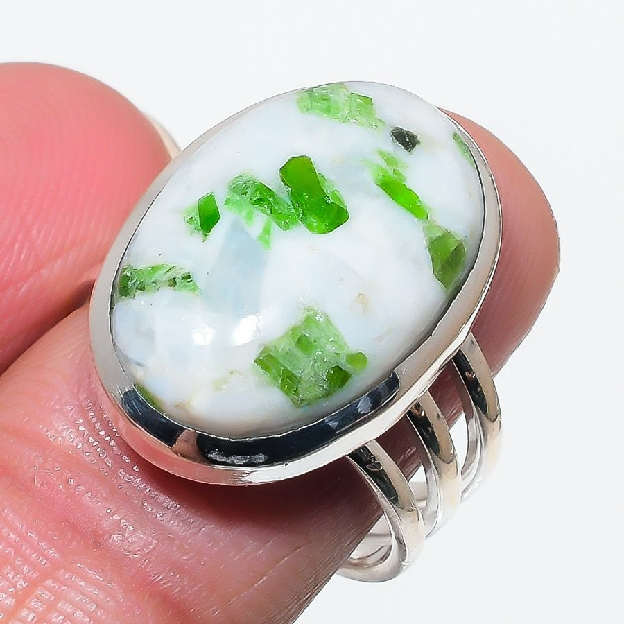 Natural Variscite 925�Solid�Silver Wedding Friendship Day Cluster Artisan Ring